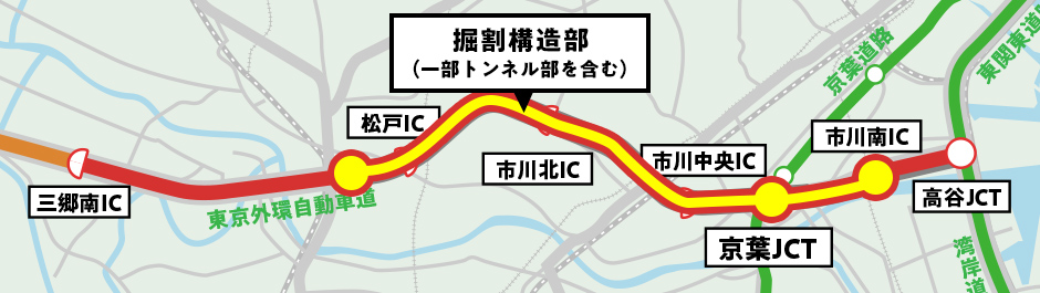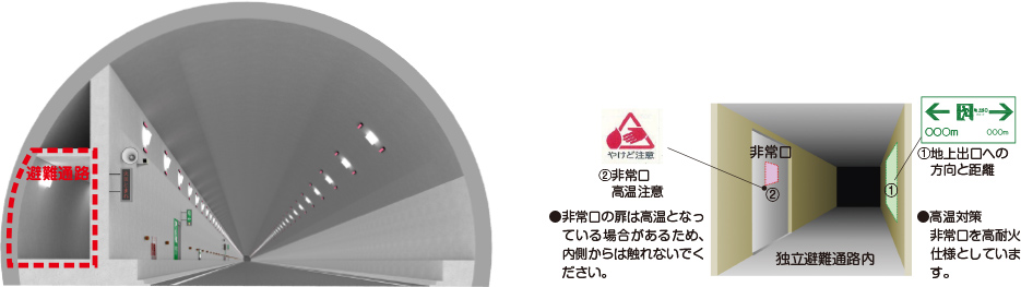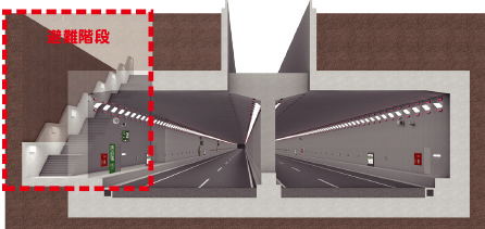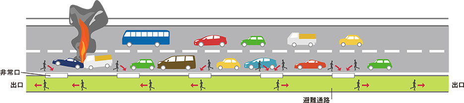 ・非常口の配置は、原則、掘割区間は1km程度に1箇所、京葉JCTランプ部は60m程度に1箇所。