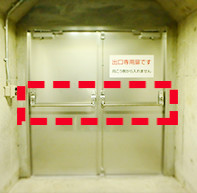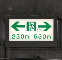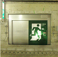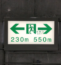 ・壁面に設置してある非常口への誘導表示板を目印に避難してください。