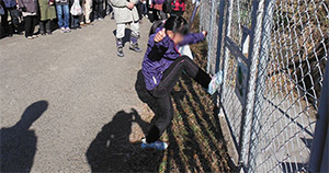 参加された住民の方々は、立入防止柵(蹴破り式)を蹴破り、整然と避難されていました。