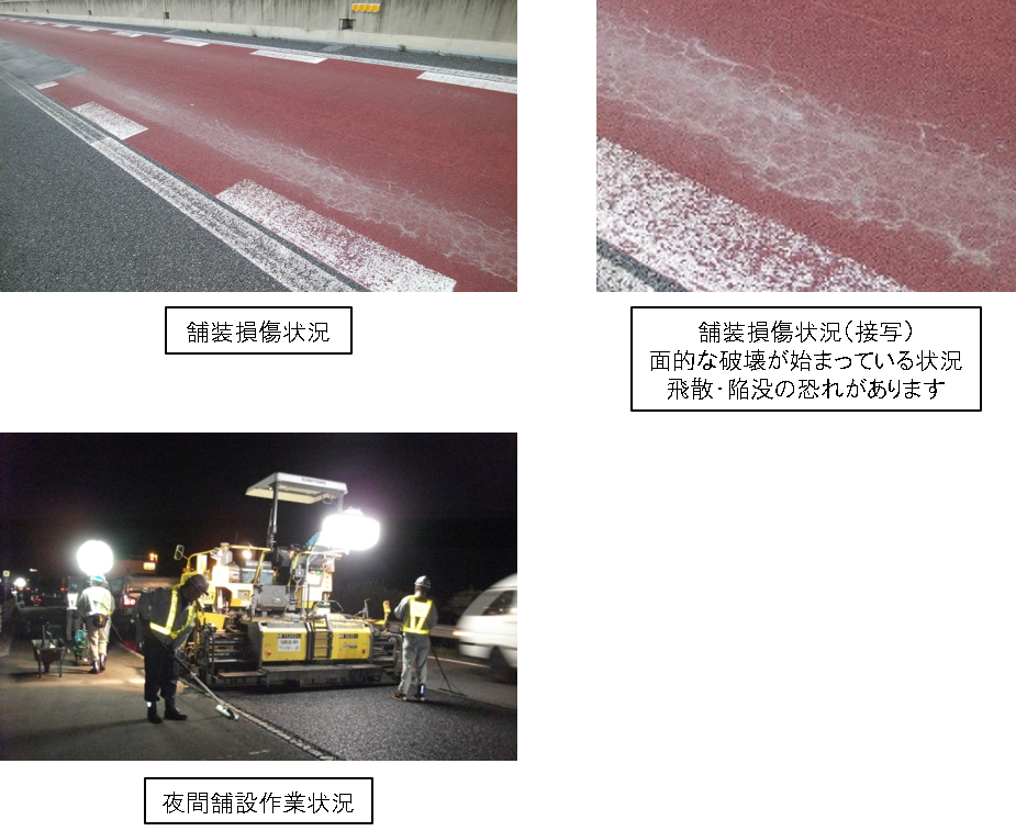 そのため、お客さまへ極力ご迷惑をおかけしないよう、交通量が少ない平日の夜間にランプ閉鎖を行い、工事を集中的かつ効率的に実施します。安全・快適に高速道路をご利用いただくために必要な工事ですので、ご理解とご協力をお願いします。![]()