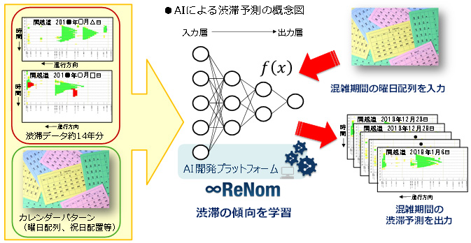Grid is a technology venture company with one of the leading AI technologies in Japan, and the AI development platform "ReNom" that can respond to various issues developed and provided by Grid. * And, using NEXCO EAST 's congestion prediction technology, we developed a prediction model equivalent to a traffic forecaster. As a result of comparing this prediction model with the traffic jam results during the traffic congestion period, we were able to confirm a certain degree of accuracy and set the stage for practical application.