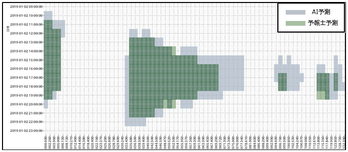 << Example of forecast [1] >> Kan-Kan-Etsu Expressway In-bound Line January 2 (Wednesday) Comparison of AI forecast and forecaster forecast