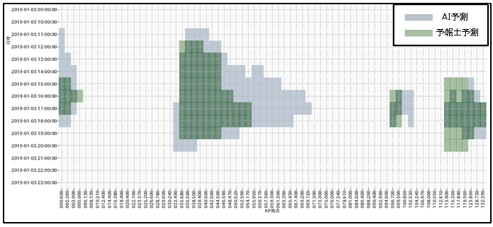 In addition, when comparing the traffic jam forecast for the year-end and New Year holidays of the Kan-Etsu Expressway this year, the traffic forecast by AI and the traffic forecast by the traffic forecaster are compared, and about 80% show the same tendency.