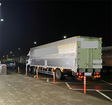 In addition, although the reserved parking spaces for double-articulated trucks are designed to ensure that parking can be done with prior reservation, there have been cases where reserved vehicles have been unable to use the spaces due to unreserved vehicles parking or illegal parking on the access roads, etc. (Photo 12).