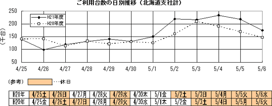 - Last year: 12 days from April 25, 2008 (Fri) to May 6, 2008 (Tue)