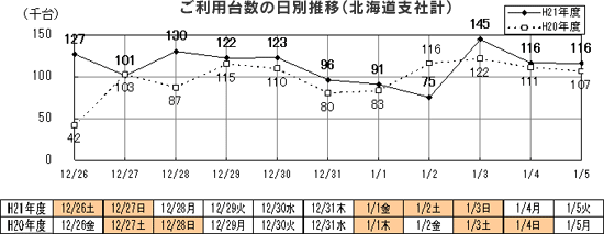 [比較対象は、平成20年12月26日(金)~平成21年1月5日(月):11日間]