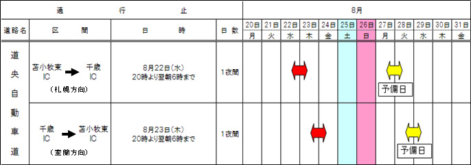 In case of bad weather, the postponement will be postponed. Please check the NEXCO EAST Customer Service Center, Japan Road Traffic Information Center, Highway Telephone, information board, etc. for traffic regulation status.