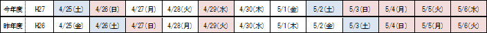 [Comparison target April 25, 2014 (Fri)-May 6, 2014 (Tue): 12 days]