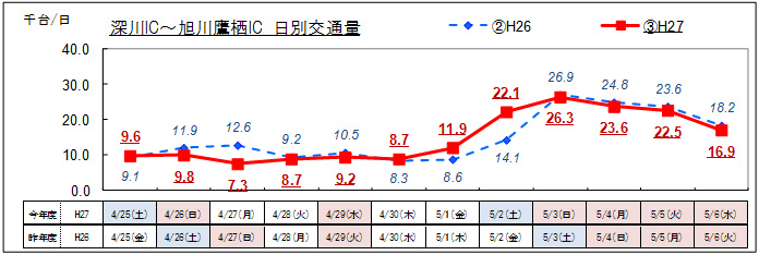 - The traffic volume on the Hokkaido Expressway and the Fudaru Expressway was roughly the same as last year.