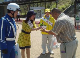 高速道路での事故の減少を目指し、スピードダウン・居眠り運転防止・シートベルト着用による高速道路上への車外放出による事故防止を交通安全啓発チラシにより呼びかけ、沿道ではのぼり旗などを使った交通安全啓発をします。