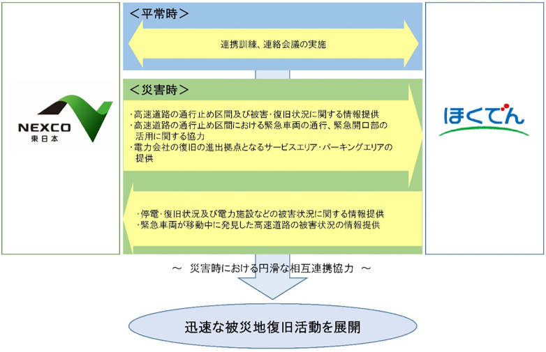 NEXCO EAST (Headquarters: Chiyoda-ku, Tokyo, President and Chief Executive Officer: Toru Kohata) and Hokkaido Electric Power Co., Inc. (Headquarters: Sapporo City, Hokkaido, President and Chief Executive Officer: Akihiko Mayumi) today were in a disaster. We would like to inform you that we have signed an agreement regarding cooperation between East Nippon Expressway Co., Ltd. and Hokkaido Electric Power Co., Inc. for the purpose of swift recovery activities.