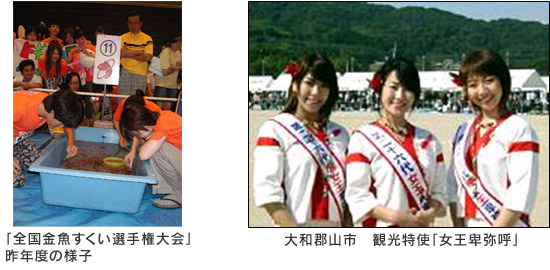 | Content | In accordance with the rules of the "National Goldfish Scooping Championships," each 3 minutes will compete with one poi for how many animals you can scoop. Although there are elementary and junior high school students' divisions and general divisions in the championships, this year's competition will not be divided into divisions, but the ranking will be determined each time. Each time, the winning cups, diplomas, and other extra prizes will be given to the top prize winners from the special envoy of Yamato Koriyama City, "Queen Himiko". |