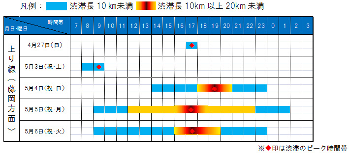 Also, during the Golden Week period (Friday, April 25-May 6, 2014), traffic congestion is expected to occur at a maximum of about 15km, so before departure, Please check the traffic congestion forecast before going out. When there is a traffic jam, check the information displayed on the information board, keep a sufficient distance between you and the vehicle in front of you, and drive with caution in case of a rear-end collision.