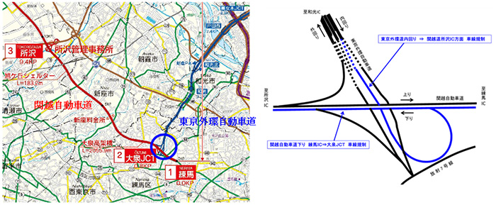 NEXCO EAST Tokorozawa Administration Office (Tokorozawa City, Saitama Prefecture) enforces lane regulation by bridge repair work between Gaikan Expressway Inner Oizumi Junction (JCT) and Kan-Etsu Expressway Tokorozawa Interchange (IC). I will. As a result of this construction, traffic congestion of up to approximately 4km in the area of Gaikan Expressway Niigata (inward) and approximately 2km in the area of Kan-Etsu Expressway (Out-bound line) is expected.