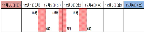 From Monday, December 1 to Wednesday, December 3 (18:00 to 6:00 the following day)