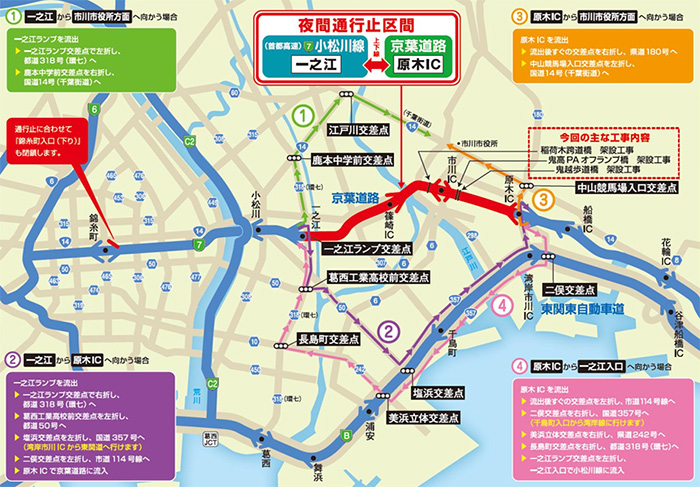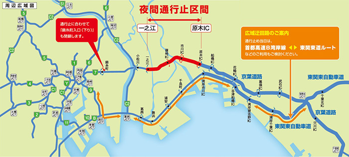 首都高速7号小松川線 一之江 ~ 京葉道路 原木IC間夜間通行止めのお知らせ