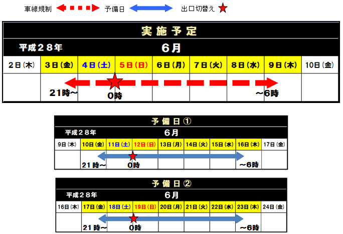 - In case of stormy weather, construction and change of Kohoku IC exit position will be postponed on a spare day.