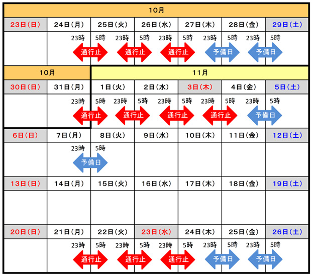 | Regulation content | Night closure (the detour route is Attachment 1 [PDF: 329KB] Please refer to) | |