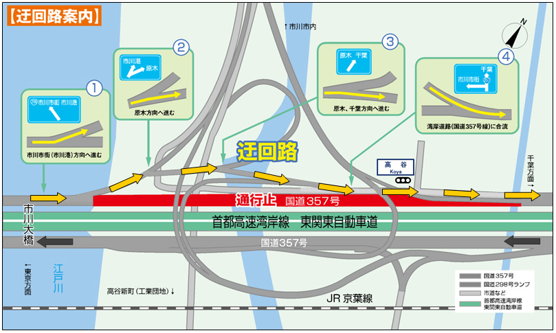 - Notice of night closure at Takaya, Ichikawa City, bound for East Route 357 (Chiba area)