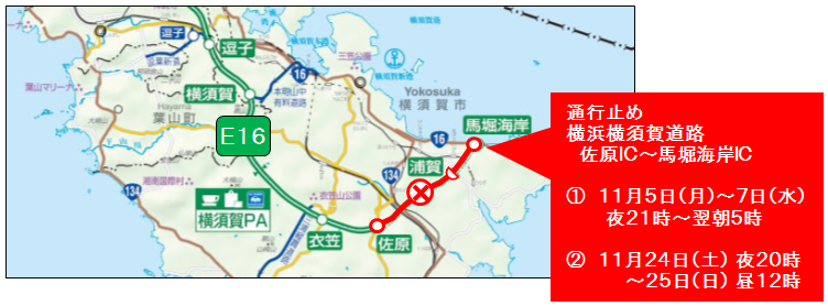 • [E16] Yokohama Yokosuka Road Sawara IC - Maborikaigan IC traffic closure notice