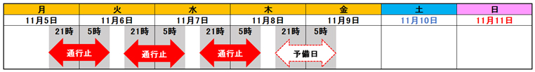 【1】11月5日(月)~7日(水)各日夜21時から翌朝5時まで