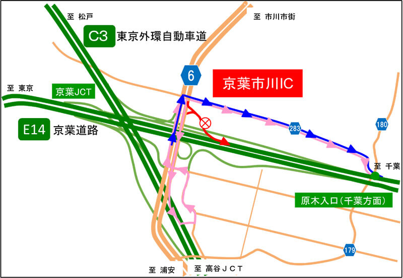 - [E14] Notice of nighttime ramp closure Keiyo Road Keiyo Ichikawa IC