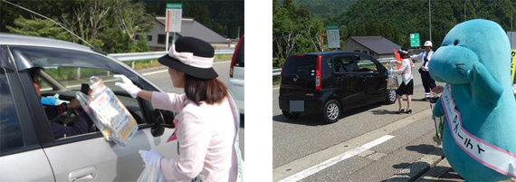 | Hokuriku Expressway Kurosaki PA (Out-bound) | Call for traffic safety by highway lady, etc., and distribute traffic safety awareness leaflets, etc. | 新潟管理事務所 025-287-4411 | ![]() | |