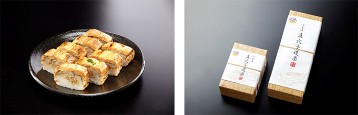 We use "Mago eel" that is landed at Ishinomaki Fish Market from Sanriku coast, which is one of the most famous fishing grounds in Japan, off Kinkazan. We carefully select the optimum size for stick sushi, and carefully handle one soft and plump "Manako" by hand, one by one.