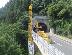 損傷した舗装補修工事、橋梁点検、維持修繕作業を行います。