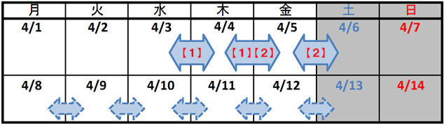 [2] 2019, April 4 (Thursday) to April 5 (Friday) 2 at night