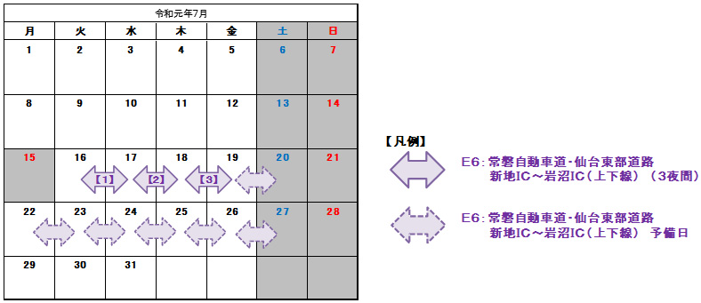 - [E6] Joban Expressway [E6] Sendai-Tobu Road (between Shinchi IC and Iwanuma IC) Implementation of night traffic closure