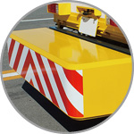 A lightweight and compact collision damping device for mounting on construction vehicles.