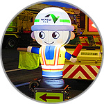 An air balloon type humanoid safety guide sign that is easy to see during the day and at night.