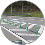 “置くだけ”でスピーディーに工事規制内作業員の安全性を大幅にUP!基礎・アンカー設置等の付帯工事が不要で、現地に置き、接続材を落とし込むだけで設置可能な仮設防護柵です。