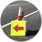 道路分岐部の工事規制時に設置し、ドライバーに分岐位置の変更を知らせます。ドライバーの安全と工事関係者が安心して作業できる環境を提供します。
