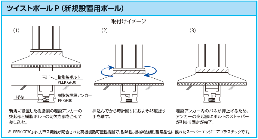 ツイストポールP(簡易着脱式車線分離標)