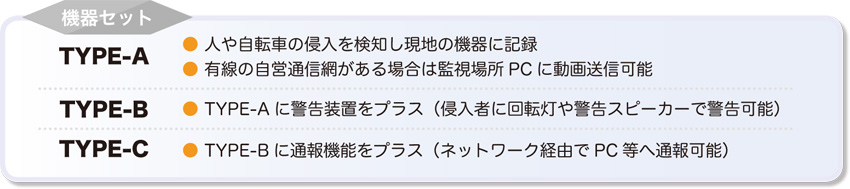 | 침입 탐지 부 | 적외선 열 카메라 | 640 × 480 픽셀 | 방수 형 케이스, 폴 브래킷 |
