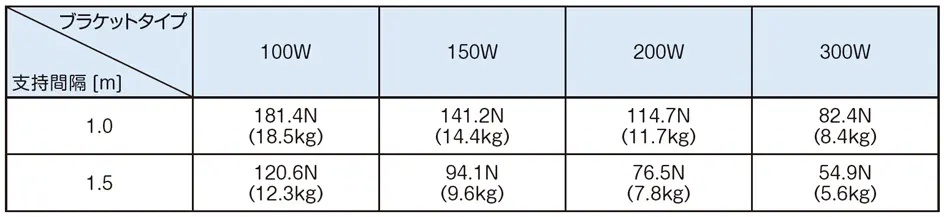 ※許容荷重につきましては、ケーブルおよび分岐材を含む1 m あたりの総重量を表示しております。