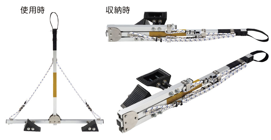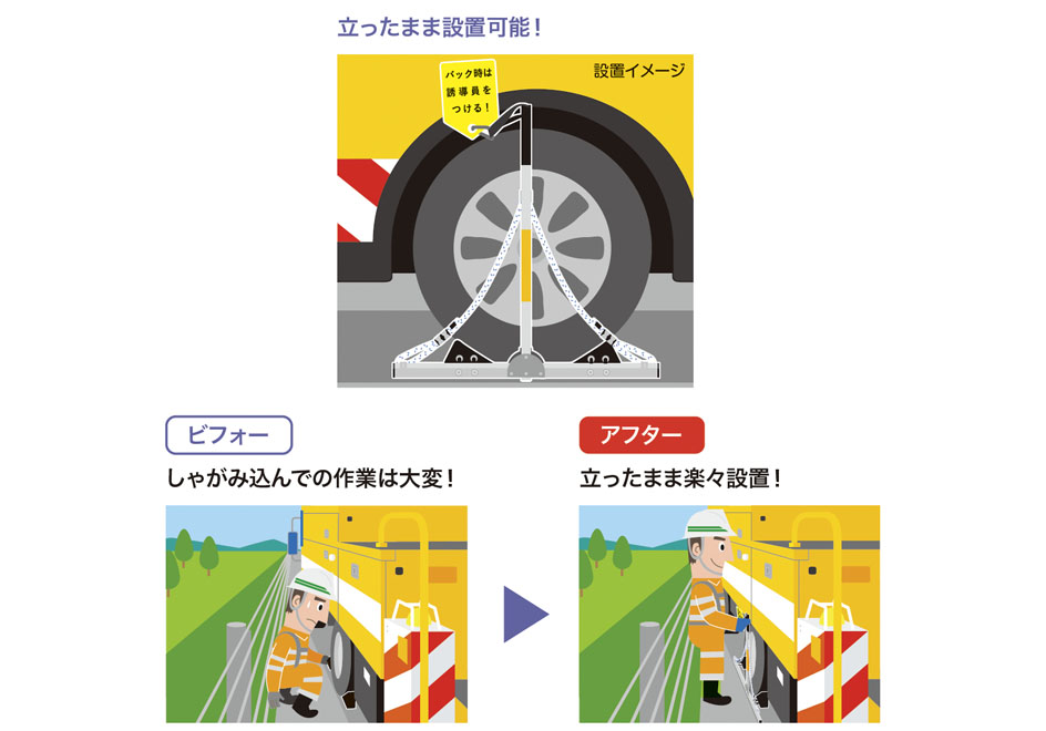 立ったまま設置・取り外しができ折りたたみ可能な車輪止め装置。