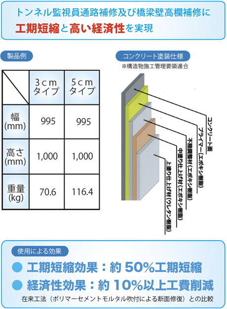 2. 従来工法(型枠工法、吹付工法等)と比較し、工期の短縮、工事費の縮減に効果