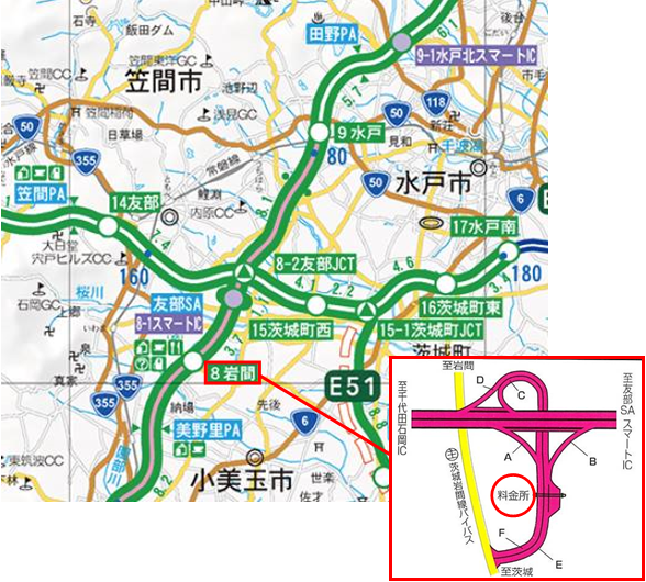 E6 常磐自動車道 岩間料金所 位置図