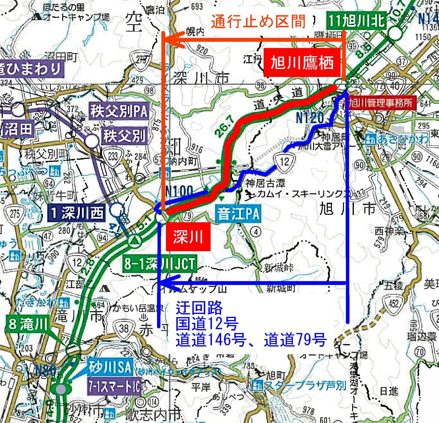 【E5】道央道 旭川鷹栖IC~深川IC間(上り・札幌方面)実況見分に伴う通行止めのお知らせ(11月26日)