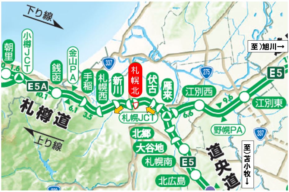 - 【E5A】札樽自動車道 札幌北IC(上り線・小樽方面出口)出口閉鎖のお知らせ( 2/22(水)22:00~)