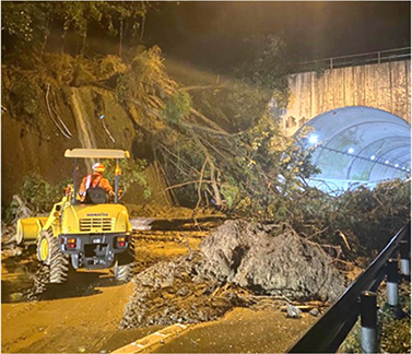 これまでの降雨により地盤が緩み、土砂災害が発生する危険性が高まっています。そのため、雨が落ち着いた状態が一定時間続いた後、点検・作業(復旧・清掃)を行い、安全を確認したうえで通行止めを解除することになります。ご理解とご協力をお願いします。