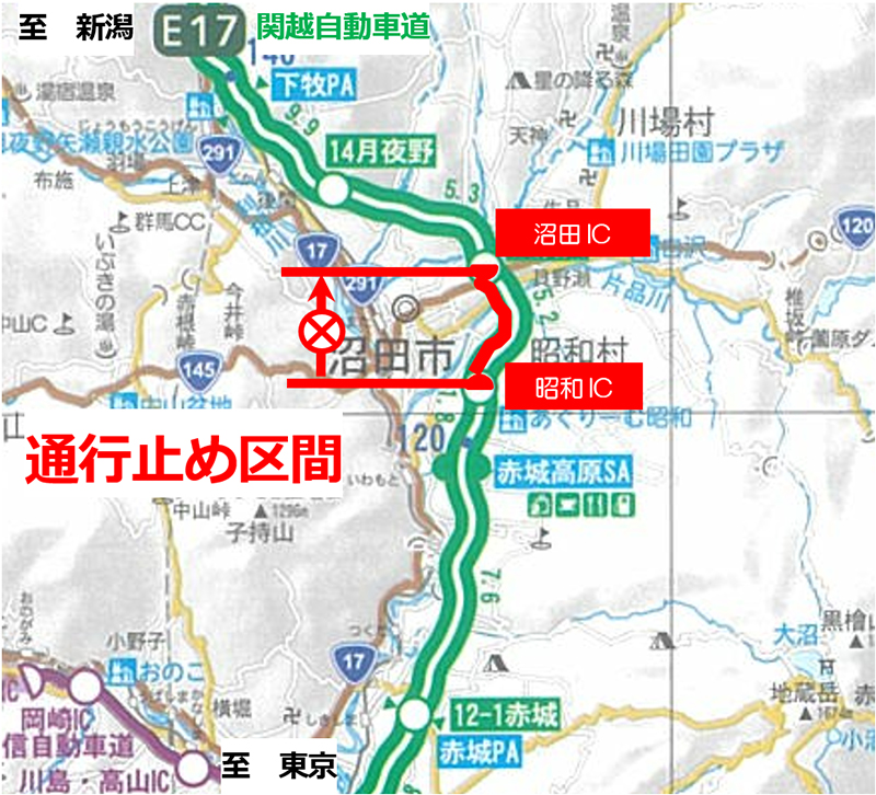 - 【E17】関越自動車道 下り線 昭和IC⇒沼田IC間 夜間通行止めのお知らせ