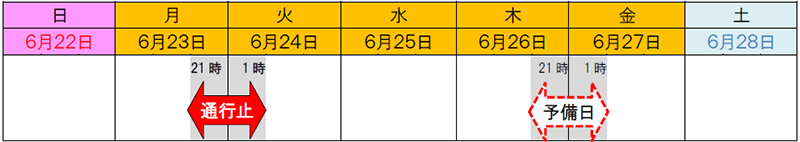 実施日:令和7年6月23日(月)夜21時から翌朝1時まで(4時間程度)予備日:令和7年6月26日(木)夜21時から翌朝1時まで(4時間程度)