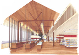 - 平成21年2月2日からオープン予定の平成21年11月までの工事期間中は、仮設店舗による営業を行います。お客さまには、ご不便をお掛けいたしますがご理解・ご協力のほどよろしくお願いいたします。
