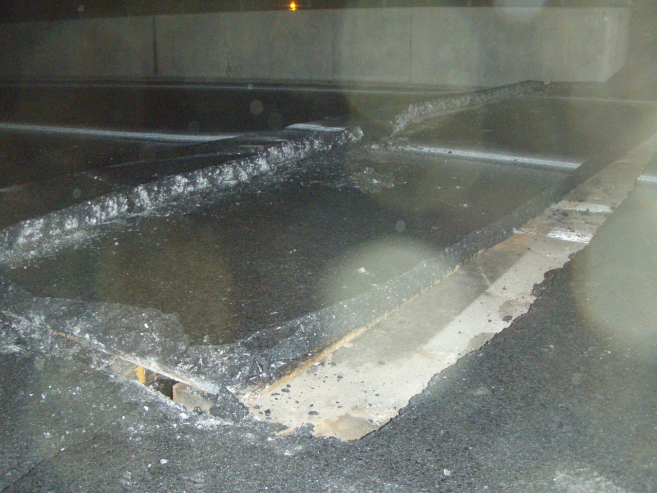 また、これら44箇所のうち、東北自動車道平泉前沢IC~水沢IC間(上り線)の盛土構造箇所において、盛土変状(道路路肩部の盛土が高さ約20m、長さ約30mにわたって崩れ)が生じており、仙台東部道路仙台東IC~仙台港北IC間(上下線)の橋梁部においては、橋桁が水平方向に5cmほどずれ、ジョイント部の路面に段差が生じています。
