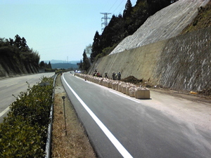 勿来方面に向けて4月14日通行止め解除直前に撮影)