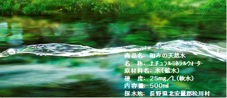 幅広い年代の皆さまに、憩いのひとときのお供として末永く親しんでいただけるよう全体にカドのないやさしい商品名である「和みの天然水」というネーミングとしました。